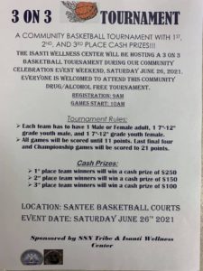 The Isanti Wellness Center will be hosting a 3-on-3 basketball tournament on Saturday June 26, 2021. Everyone is welcome to attend!