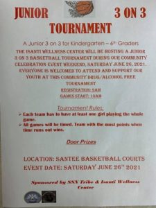 The Isanti Wellness Center will be hosting a 3-on-3 basketball tournament on Saturday June 26, 2021. Everyone is welcome to attend and support our youth at this community drug/alcohol-free tournament! Registration begins at 9:00 AM and games start at 10:00 AM.